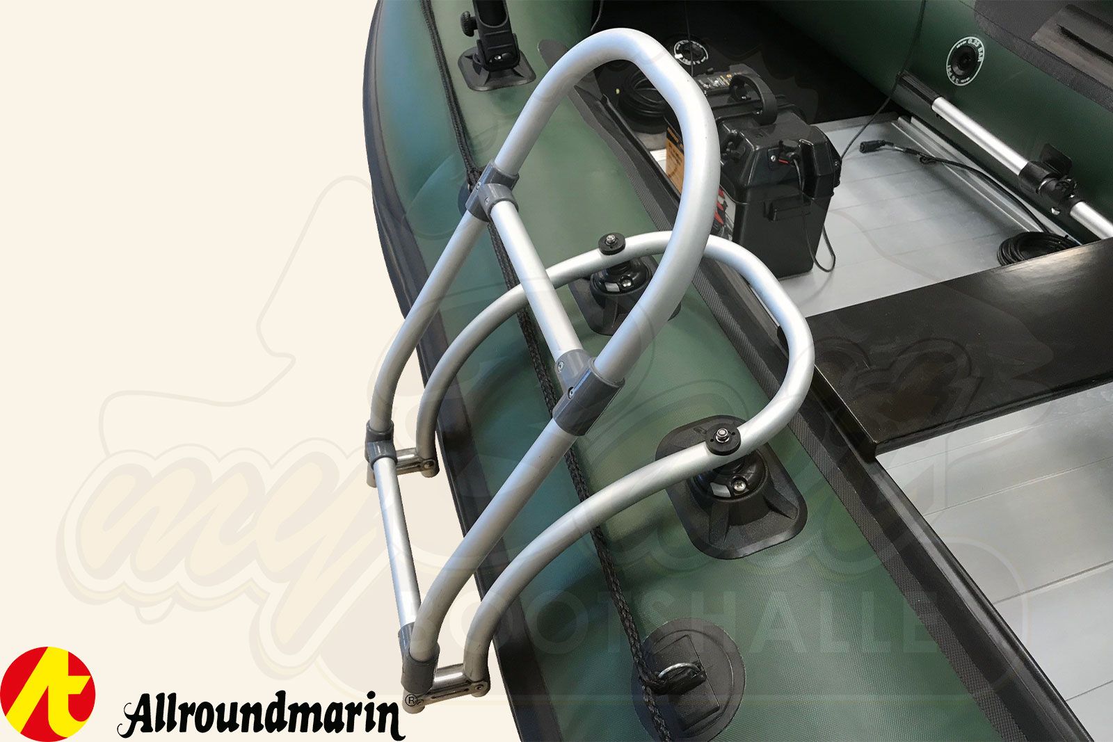 Practical folding bathing ladder made of aluminum for inflatable boats. You only need 2 pieces of Railblaza Ribports and a PVC boat glue.