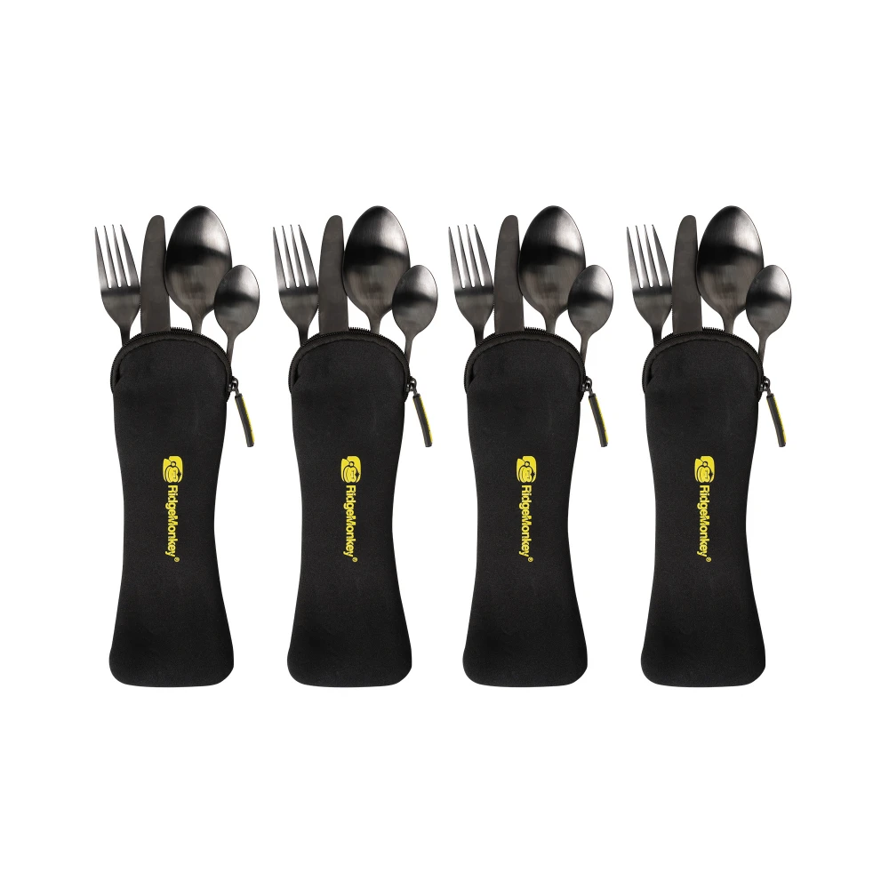 The cutlery is finished with an anodised, scratch-resistant coating and comes supplied in a neoprene pouch.