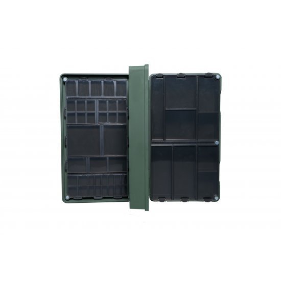 Dezelfde Armoury Tackle Box die we allemaal kennen en waar we van houden, maar nu met een nieuw deksel dat de toevoeging van 38 kleine opbergvakken biedt. Perfect voor de opslag van wartels, rig-ringen, hookbeads, en nog veel meer. De nieuwe deksel van de Armory Pro heeft ook een liniaal aan de buitenkant voor het knopen van nauwkeurige rigs, elke keer weer. Elke visser houdt ervan om zo georganiseerd mogelijk te zijn als het gaat om hun kleinmateriaal, en de Armory Pro helpt je daarbij. Er zijn in totaal 67 opbergvakken van verschillende afmetingen die een breed scala aan items kunnen bevatten, zoals: scharen, haken, hooklinks, multitools en naalden, tot kleinere items, zoals hookbeads, wartels en rig-ringen. Alles heeft een thuis in de Armory Pro. De Armory Pro Tackle Box is weerbestendig en duurzaam dankzij de robuuste ABS-kunststof constructie. Met drie grote rigboards er aan toegevoegd, kun je er zeker van zijn dat je, ongeacht je stijl van vissen, op alles voorbereid bent.