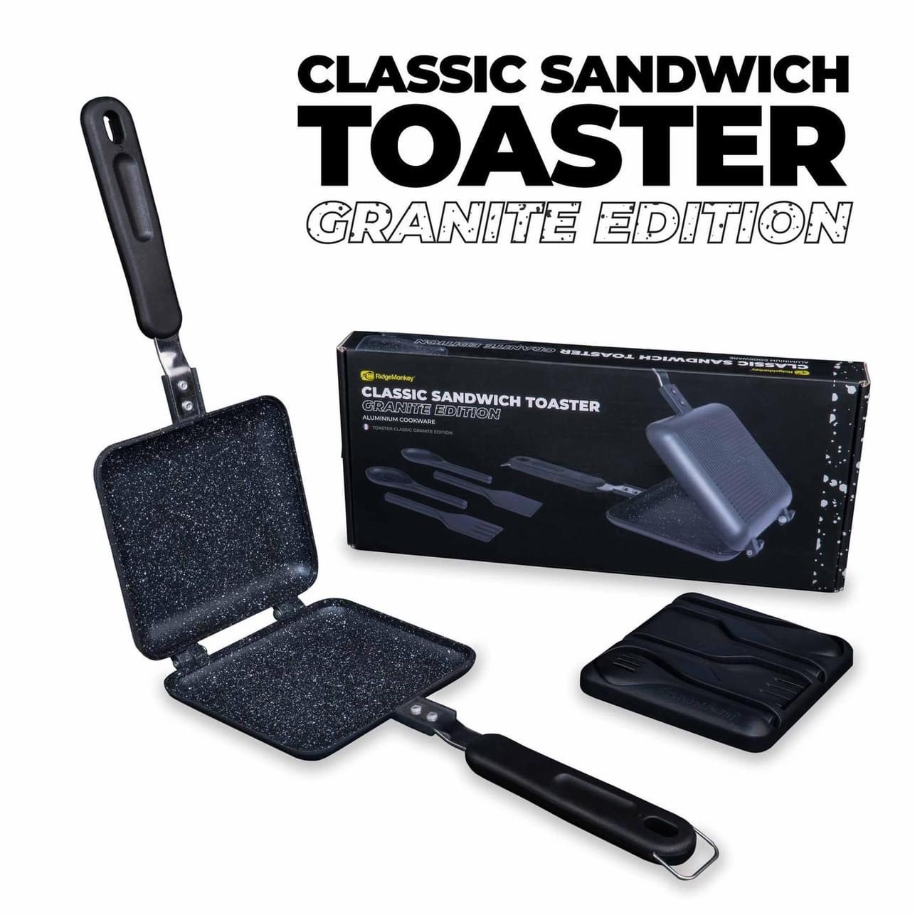 De RidgeMonkey Classic Sandwich Toaster Granite Edition is voorzien van vaste cool-touch handgrepen, geklonken scharnieren en een volledige set keukengerei die in de Toaster past om eenvoudig op te bergen. De vierkante vorm betekent ook dat er minder opslagruimte wordt verspild dan bij traditioneel cirkelvormig kookgerei. Ondanks de naam is de Classic Sandwich Toaster niet alleen voor tosties, denk ook aan pita broodjes, wraps of omeletten, en dit zijn er slechts een paar om je creatieve ideeën de vrije loop te laten, de mogelijkheden zijn eindeloos. Onze geheel nieuwe graniet style coating maakt onze pannen sterker, duurzamer en biedt verbeterde antiaanbak eigenschappen, waardoor compact kookgerei naar een geheel nieuw niveau wordt getild.