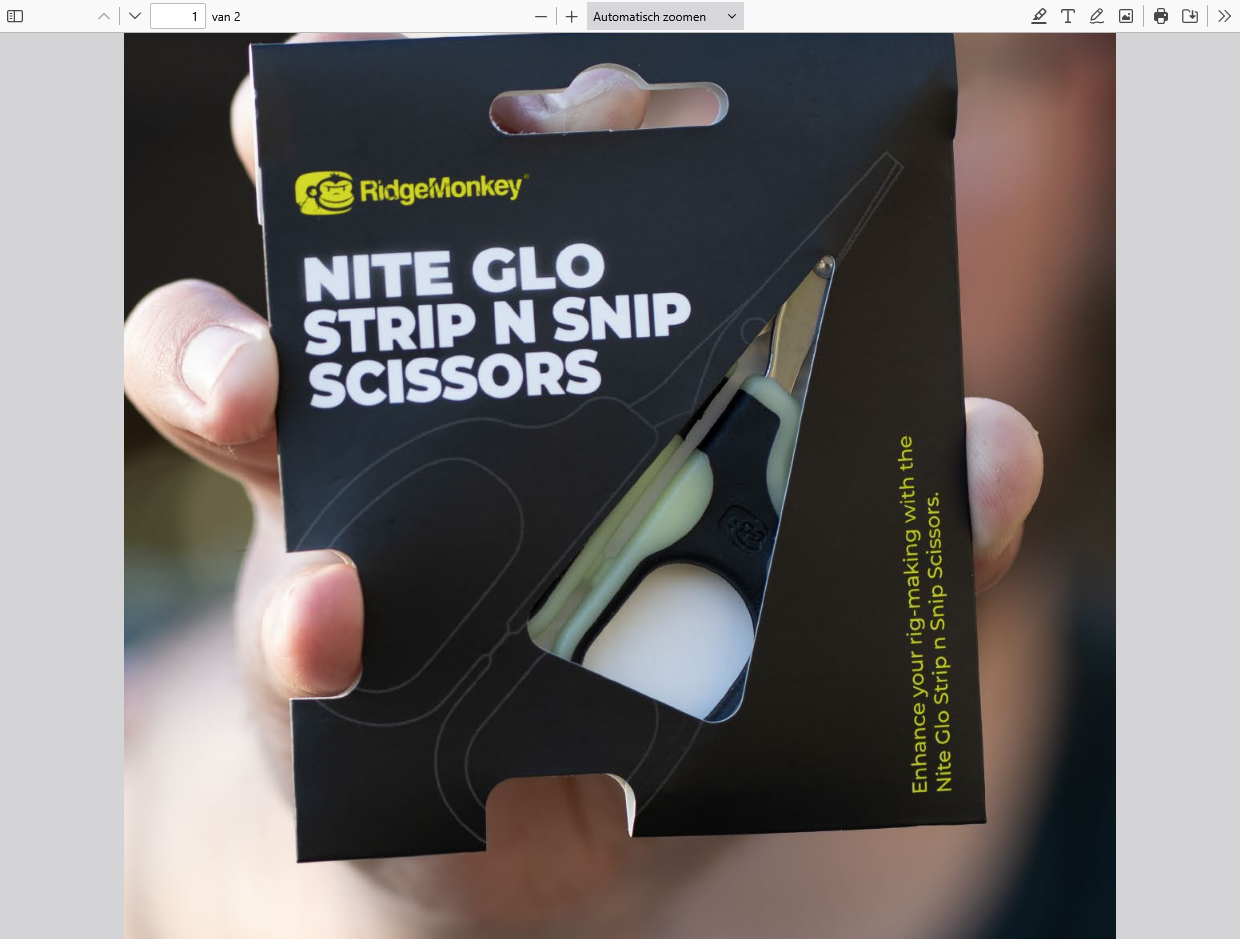 U bevindt zich hier: Home1 / Shop2 / Karper3 / End tackle4 / Accessoires Algemeen5 / Ridgemonkey Nite Glo Strip N Snip Scissors