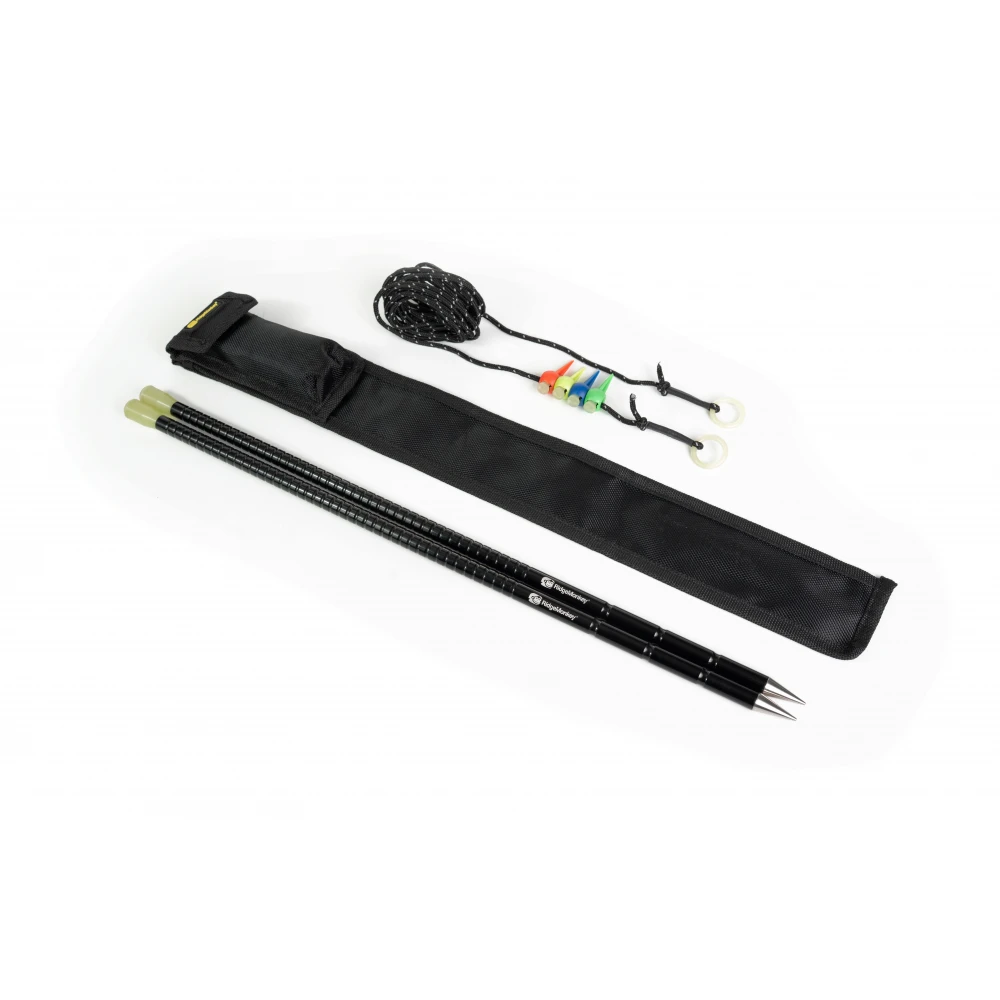 Zorg ervoor dat je elke keer exact dezelfde plek raakt met deze hoogwaardige, duurzame en strakke RidgeMonkey Nite Glo Wrap Sticks. Met zelfverlichtende Nite Glo caps, een Hi-Vis meetkoord en 4 individuele Nite Glo marker spikes kun je de sticks eenvoudig terug vinden in het donker en nauwkeurig meerdere hengels ‘wrappen’, zelfs bij weinig licht, zonder dat je externe verlichting of béta-lights nodig hebt. De geanodiseerde aluminium behuizing is voorzien van lijnvriendelijke bevestigingsgroeven, die voldoende veilige locaties bieden om er je lijn gelijkmatig en netjes omheen te ‘wrappen’ zonder weg te glijden. De sticks zijn nauwkeurig bewerkt met een glad profiel en wikkelt gemakkelijk weer af als deze eenmaal is opgewonden. 3 grotere groeven aan de basis van de sticks bieden locaties om het meetkoord vast te zetten, afhankelijk van de diepte waarop de stick in de grond wordt gestoken. De grondpen is gemaakt van roestvrij staal, veel dichter materiaal dan de lichtgewicht aluminium behuizing, om de sterkte van de stick te vergroten en de penetratie te optimaliseren, waardoor de geharde punt gemakkelijk in de grond kan worden geslagen. Met het meetkoord kun je de sticks elke keer op een consistente afstand van 12 ft/3,6 m uit elkaar plaatsen. Het beschikt over verstelbare, uniek gekleurde Nite Glo markeringen met puntige uiteinden die eenvoudig over het snoer schuiven tot de vereiste afstand voor elke hengel, voordat ze stevig in de grond worden gestoken. De stokken schuiven netjes in het duurzame hoofdvak van de beschermende draagtas, die vervolgens wordt afgesloten door een klittenbandklep met een geïntegreerd gaas vak voor het opbergen van het meet koord.