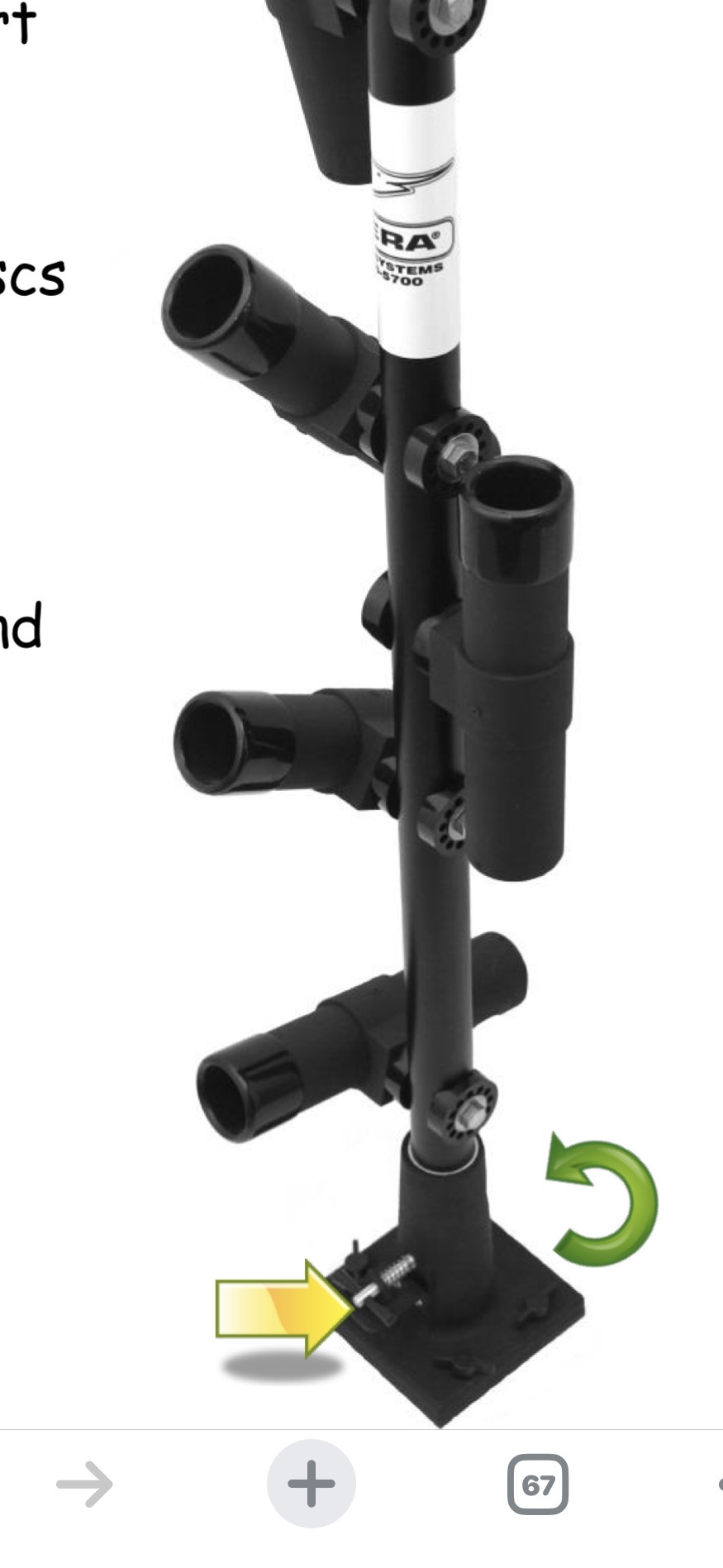 The Riviera Swiveling Rod Tower (SRT) is available in several different configurations to hold between 3 and 6 rods.  The 6-rod configuration (SRT-6) is pictured below.  Details on all the uses and configurations of the SRT are available in the SRT Instructional Sheet.